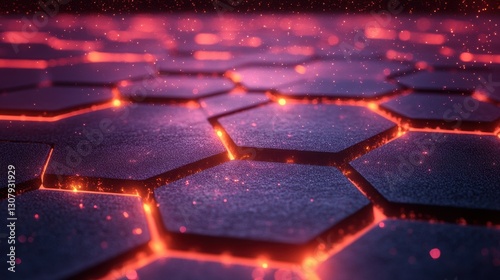Obraz premium Hexagonal Grids, Fiery Glow, Abstract Background