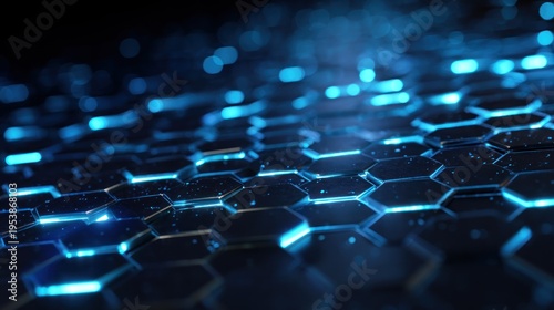 © sup, Obraz premium Hexagonal pattern with blue glowing lights