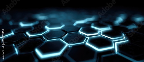 Obraz premium Hexagonal patterns glow in dark space