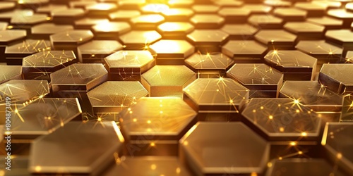 Obraz premium Hexagonal Splendor: A Mesmerizing Close-Up of a Gleaming Gold Tile Pattern,...