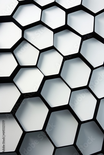 © Friedbert, Obraz premium Hexagonal structure. Imaginary illustration. Geometric white black background.