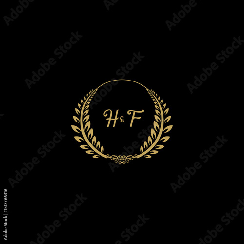 Fototapeta premium HF beautiful, feminine and elegant wedding monogram initial logo with circle floral gold