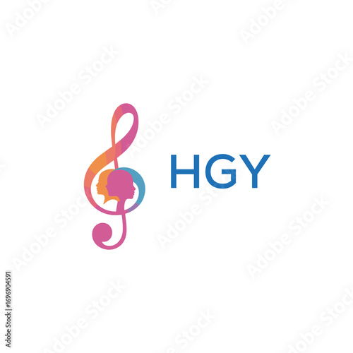 Fototapeta premium HGY “Colorful music logo with human faces and treble clef design” HGY Later Logo, “Creative music academy logo with silhouette heads and notes”