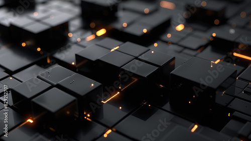 Obraz premium Hi-tech visuals enhanced by onyx black squares merging with light patterns.