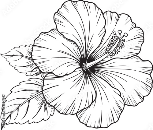 Fototapeta premium Hibiscus Flower Line Art – Black and White Botanical Floral Illustration