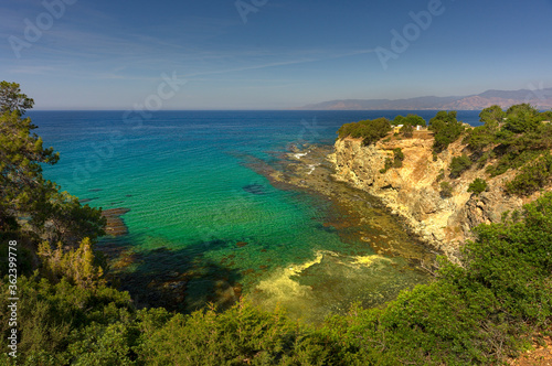 Obraz premium Hidden cove with transparent turquoise water in Cyprus