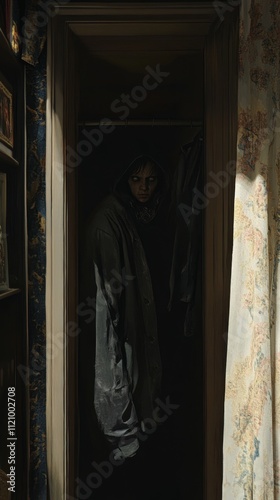 Naklejka premium Hidden Figure in a Closet: A Creepy Artwork