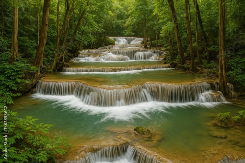 © Emin, Naklejka premium Hidden gem among lush trees: the remote waterfall in dense jungle