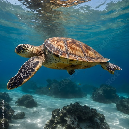 Obraz premium Hidden Riches: The Loggerhead's Voyage Through Underwater Mysteries