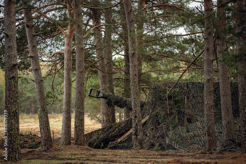 © Vlad Ozo, Obraz premium hidden self propelled howitzer with the barrel poking out of the shelter