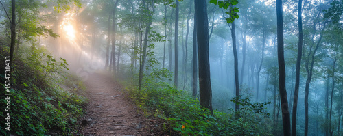 © Zeeshan, Fototapeta premium Hidden trail surrounded by dense pine trees