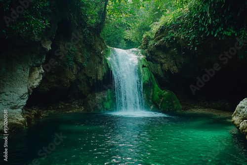 © Galih, Naklejka premium Hidden Waterfall in a Jungle Landscapes