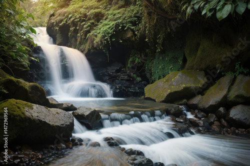 © mao, Fototapeta premium Hidden waterfall in in summer