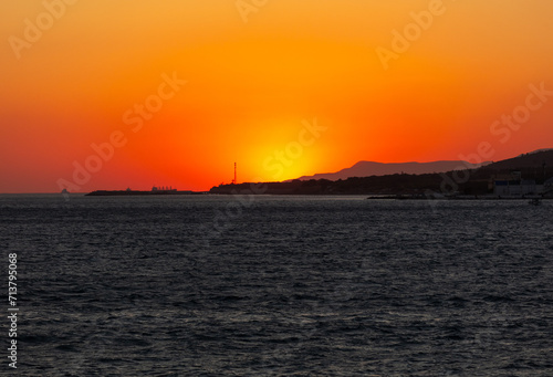 © schankz, Naklejka premium Hiding behind an island at sea. Sunset