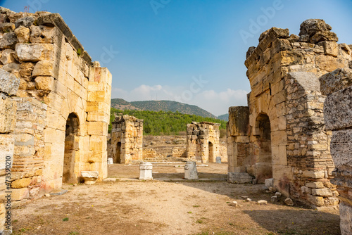 Fototapeta premium Hierapolis ancient city ruins Pamukkale Turkey. UNESCO world heritage site
