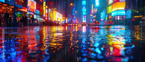Obraz premium Higefinition background of a vibrant city street in the rain, with...