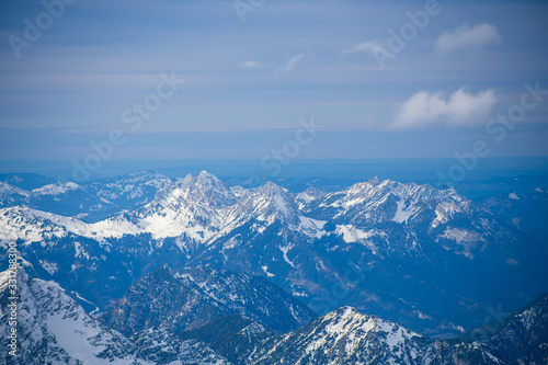 Obraz premium High alpine mountains with snow in Germany and blue beautiful sky