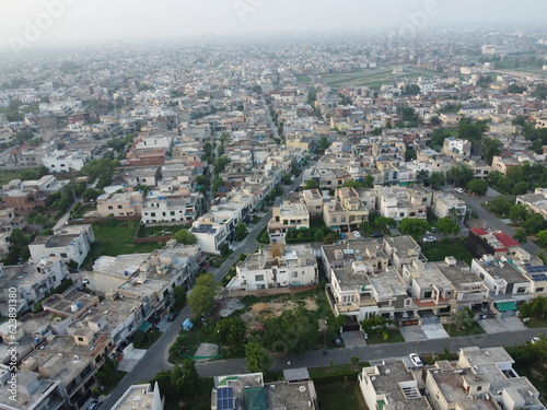 © Zaka Ullah, Fototapeta premium High angle ariel view of residential area in Cantt Lahore, Pakistan.