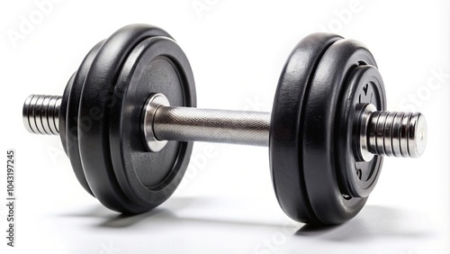 © Atittaya, Naklejka premium High angle closeup of black dumbbell on white background