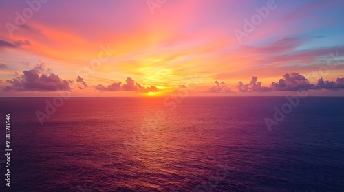 © TheseusStock, Fototapeta premium High-angle drone shot of a colorful sunset over the ocean.