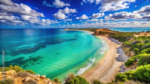 Obraz premium High angle impressionist painting, summer coastal landscape, turquoise...