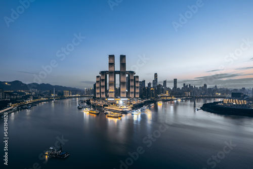 © Govan, Obraz premium High angle night view of Chaotianmen Wharf in Chongqing, China