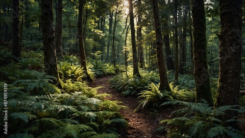 © DEER FLUFFY, Obraz premium High-angle shot of a pristine, dense woodland, showcasing the untouched beauty of nature's bounty.