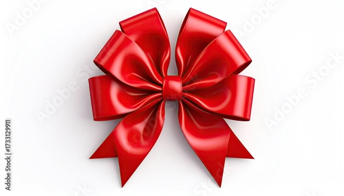 Fototapeta premium High-angle shot of a shiny, vibrant red ribbon bow, resting on a white backdrop
