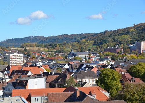 © skyf, Obraz premium high angle view across the downtown area towards the Black Forest; Lahr, Baden Germany