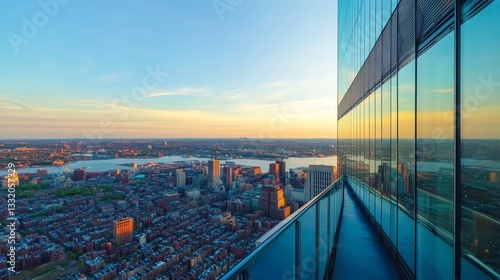 © kirania, Obraz premium High angle view of a city with skyscrapers during sunset