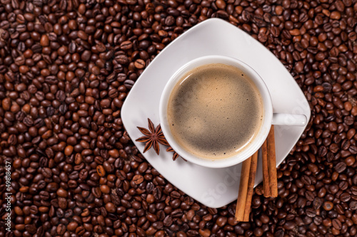 Fototapeta premium High angle view of a coffee cup with cinnamon