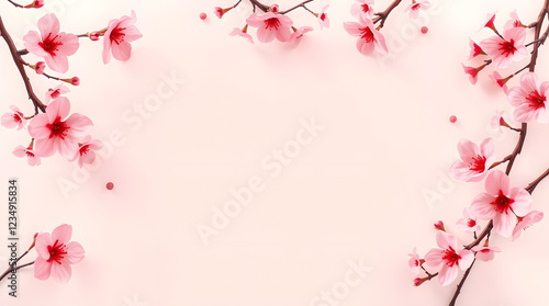 © manoa images, Naklejka premium high-angle view of a pastel background, subtly bordered by hand-painted cherry blossoms | generative AI