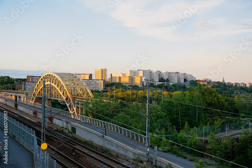 © niklas storm, Obraz premium High angle view of a railway bridge in city