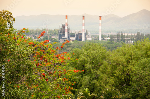 © Tanes, Obraz premium High angle view of an old coal mine with pipes in a valley.