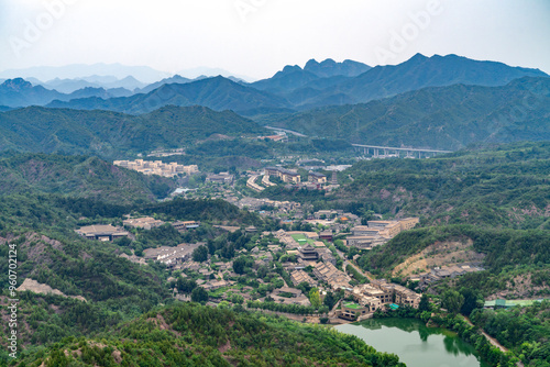 © nd700, Fototapeta premium high angle view of ancient town in the mountain in northern China