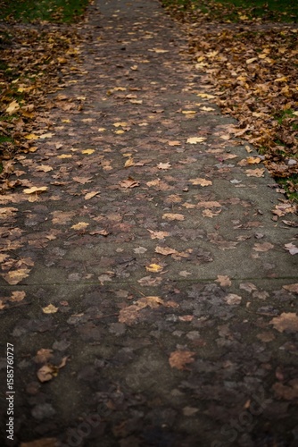 © vectorfusionart, Naklejka premium High angle view of autumn leaves on walkway