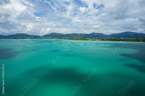 © Panya, Fototapeta premium High angle view of Blue sky white clouds over sea with shadow clouds over sea surface nature seascape background