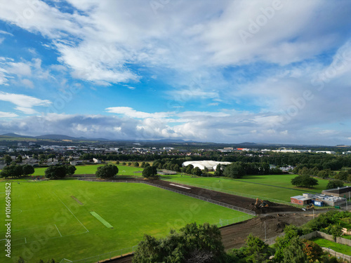© Nasim, Fototapeta premium High Angle View of Central Edinburgh City of Scotland United Kingdom During Partly Cloudy Day of August 29th, 2024