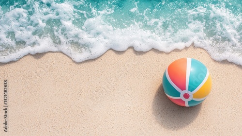 Obraz premium High Angle View of Colorful Beach Ball on Sandy Shoreline