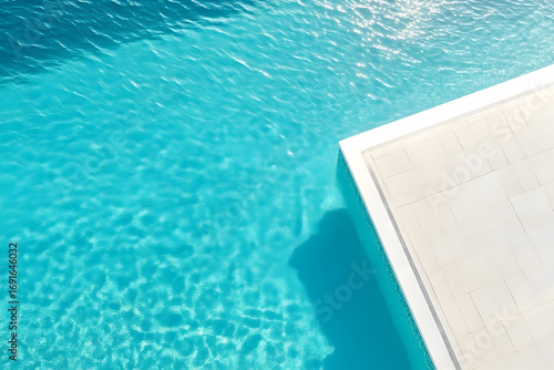 Obraz premium High angle view of empty outdoor swimming pool with clean blue water on a bright summer day
