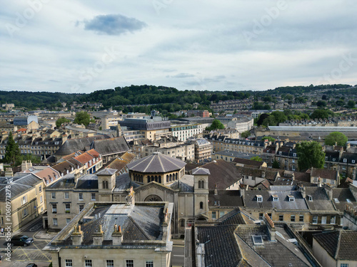© Nasim, Obraz premium High Angle View of Historical Bath City of England United Kingdom During Mostly Cloudy Day of May 26th, 2024, Aerial Footage Was Captured with Drone's Camera During Bright Sunny Day