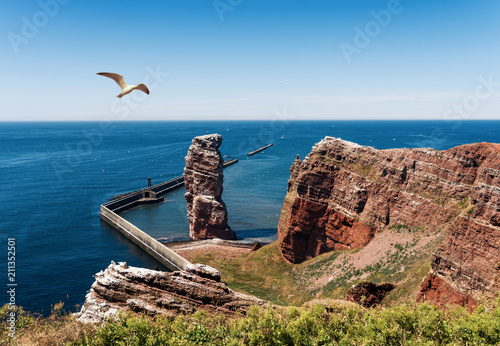 Fototapeta premium high angle view of Lange Anna sea stack rock on Heligoland island against...