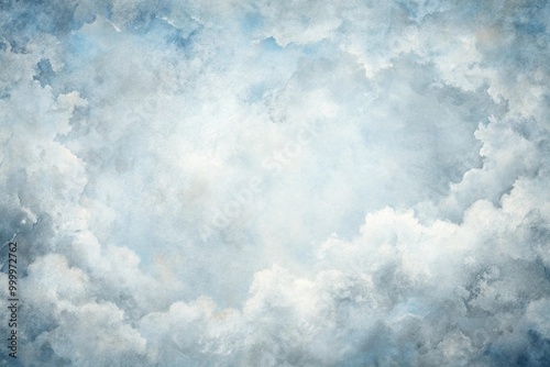 Obraz premium High angle white watercolor background painting with cloudy distressed...