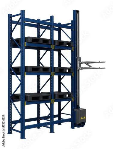 © OMD, Fototapeta premium High-bay pallet racking system with automated retrieval for large-scale storage in an e-commerce distribution hub