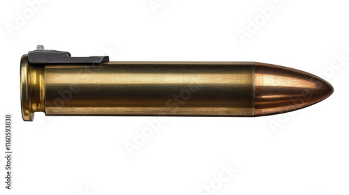 Fototapeta premium High-Caliber Cartridge: Close-up of a single, powerful rifle bullet, showcasing its intricate details and metallic finish. A powerful image for various contexts.