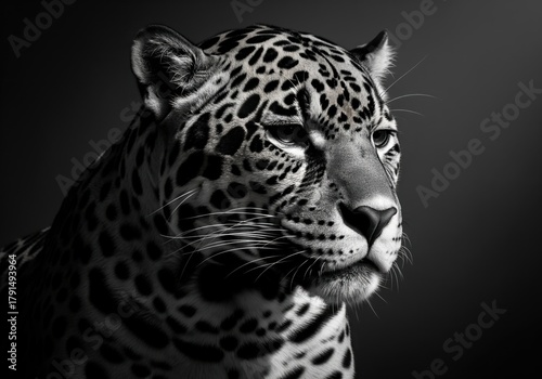 Naklejka premium High contrast black and white fine art portrait of a powerful wild jaguar