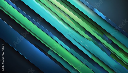 © Antonio Giordano, Obraz premium High contrast blue and green glossy stripes. Abstract tech graphic banner design. Vector corporate background