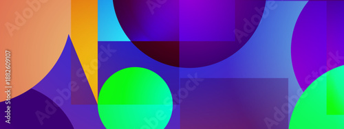 © SyahCreation, Obraz premium High contrast design with glowing green circles and purple rectangles in a layered space