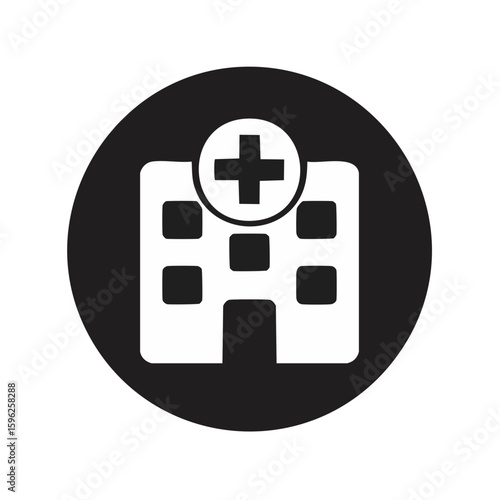 Fototapeta premium High Contrast Hospital Glyph Icon with Cross Symbol