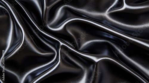 © Fotograf, Obraz premium High-contrast image of a shiny black fabric up close